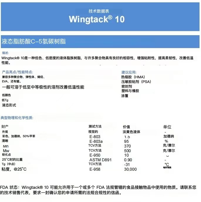 进口树脂 克雷威利直链型脂肪族增粘树脂 Wingtack 10